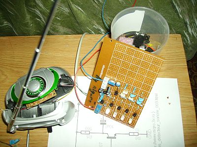 Deoarece aveam prin casa o mica veioza cu 8 LED-uri in paralel, le-am separat in grupuri de cate 2, pentru a le cupla la fiecare canal, inseriind fiecare grup de doua LED-uri cu cate o rezistenta de 270 de ohmi.