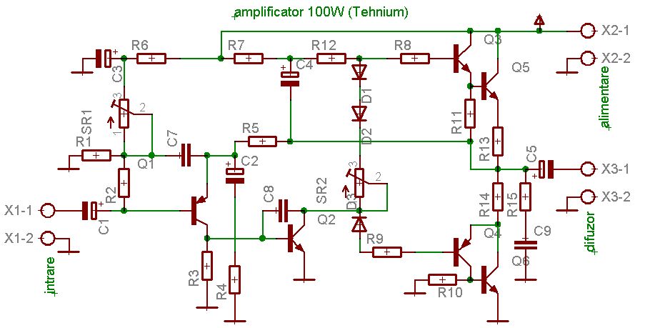 Amplificator audio Hi-Fi cu tranzistoare 2N3055 si alimentare asimetrica