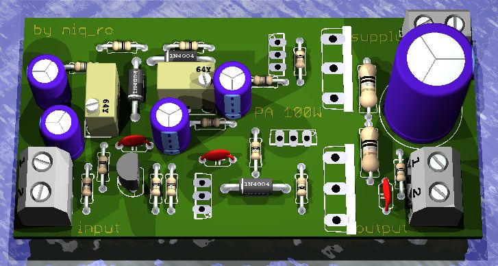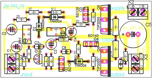 astfel am putut desena un montaj, respectiv cablaj (care se poate descarca la scara 1:1 de AICI) pentru schema: