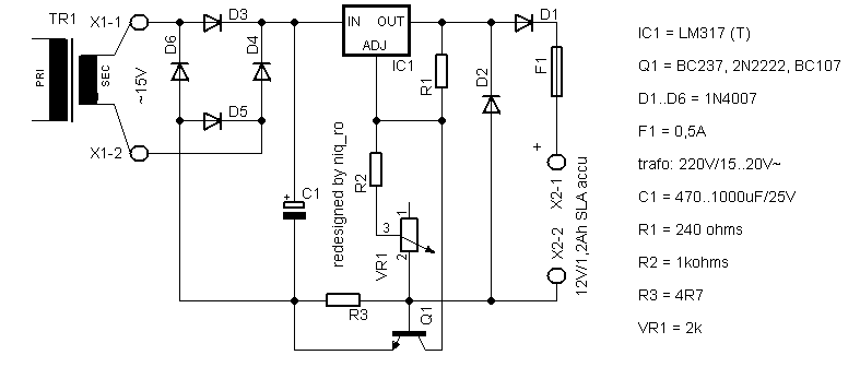 Pentru a realiza un cablaj pe gustul meu, am redesenat schema pentru un acumulator de 12V,