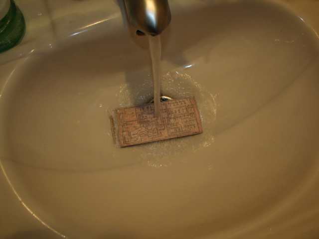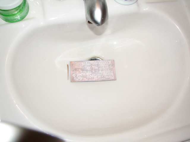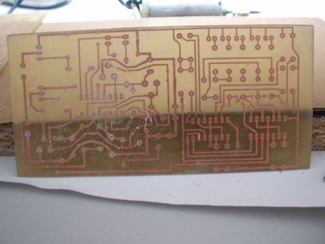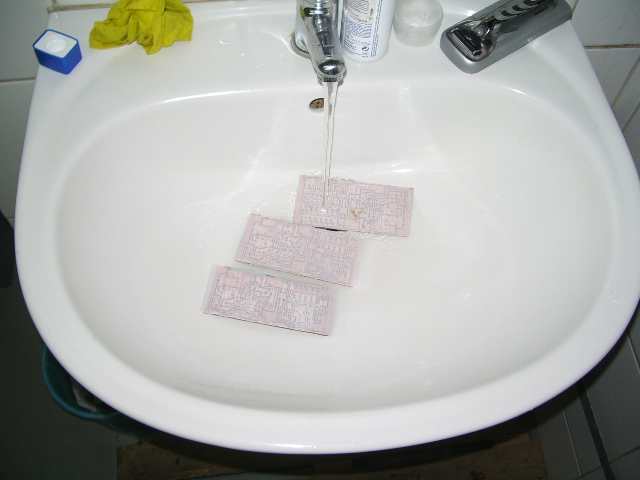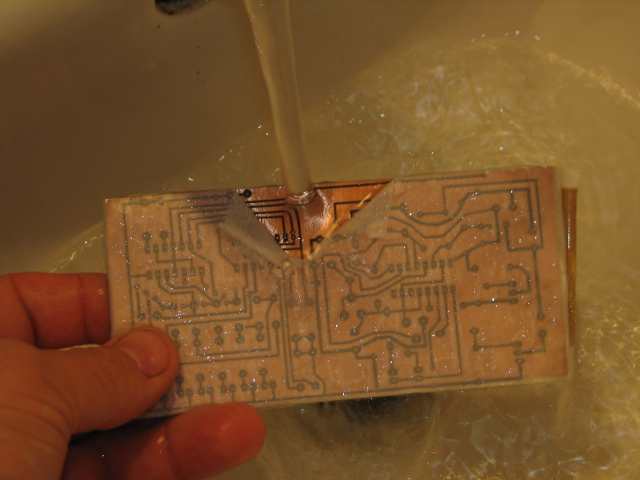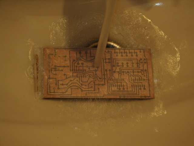pe cablaj si se calca bine cu fierul de calcat sau ceva care preseaza la cald dupa ce placuta s-a racit se introduce in apa