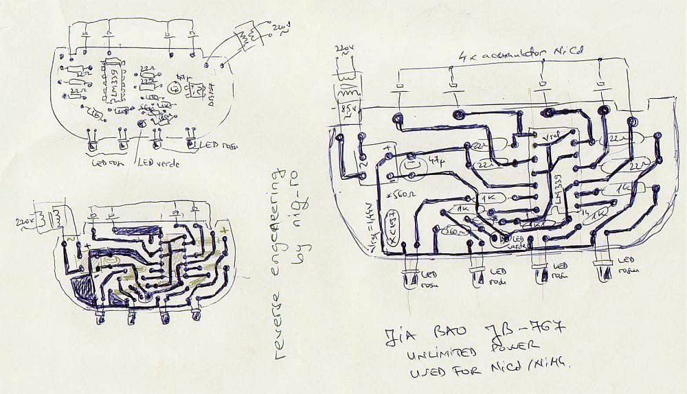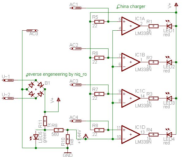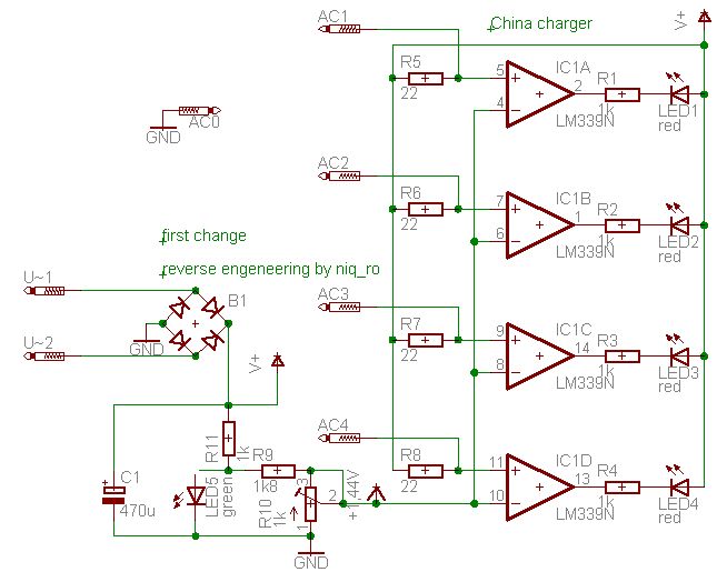 Am achizitionat la pretul de 12lei, datorita carcasei, un incarcator chinezesc; pe cutie era prezentat modul de functionare: incarcare la curent constant pana se ajunge la tensiunea nominala - indicare cu LED rosu aprins pentru fiecare acumulator, apoi incarcare cu un curent rezidual, indicat prin aprinderea cu intermitenta a LED-ului corespunzator...