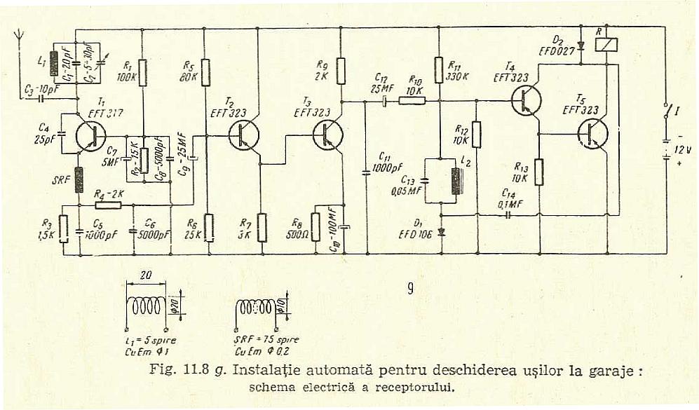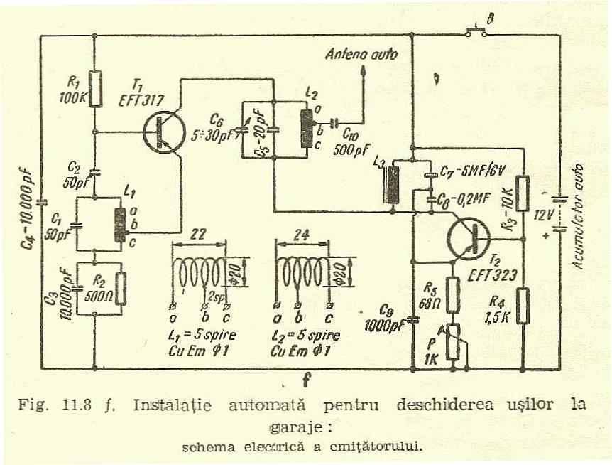 de receptorul amplasat in garaj. Releul R din circuitul de