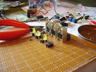 Despre integratul CMOS, care este "inima" (functie de fabricant este MMC4017, CD4017, etc) am mai scris la 4017 - aplicatii diverse.