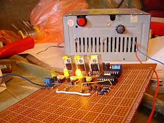 Schimband partea de comanda a LED-urilor folosind tranzistoare npn, am obtinut
