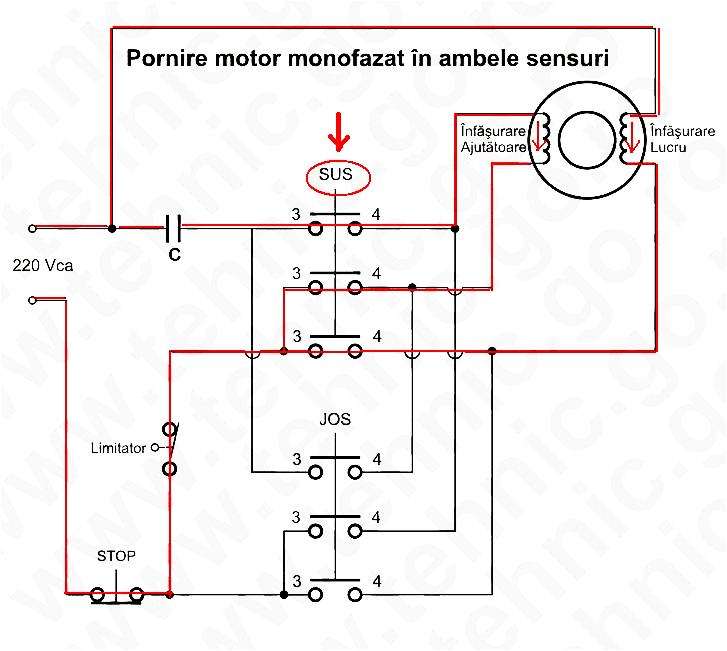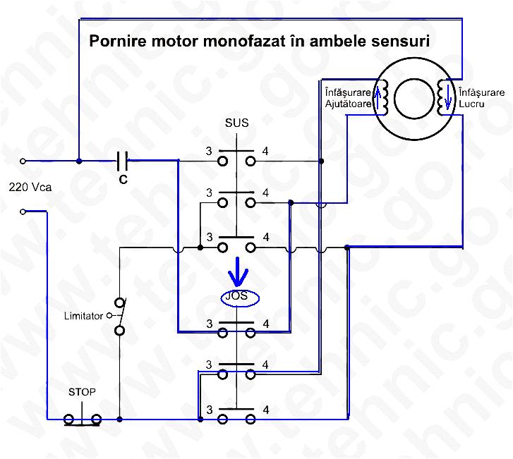 despre modul de legare al unui motor monofazat pentru a functiona in ambele sensuri,