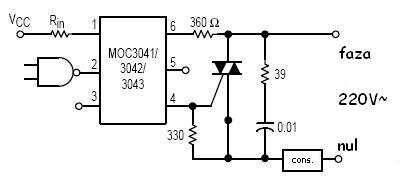 Una din variantele de optocuplor dedicat este cea oferita de Motorola prin MOC304x (MOC3041, MOC3042, MOC3043).