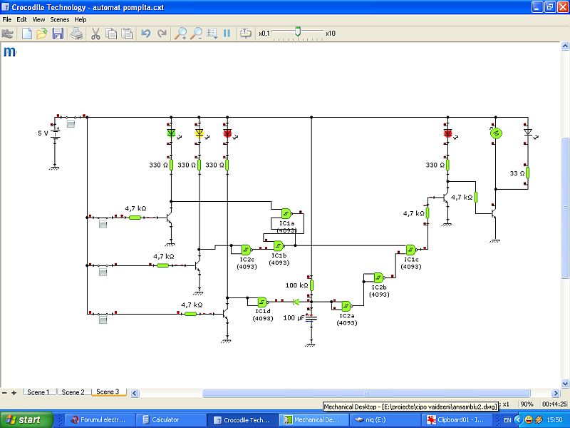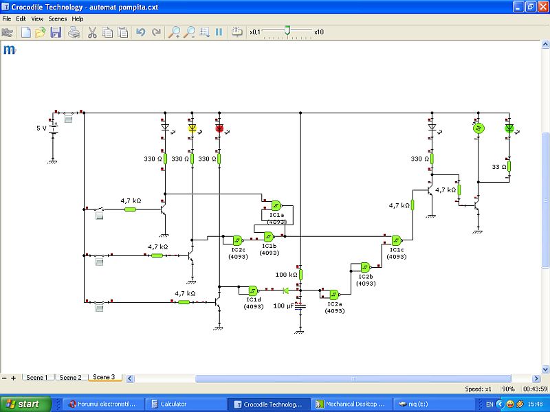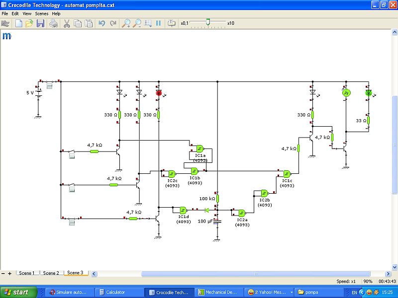 Pentru simularea functionarii automatului de pompa prezentat mai sus am folosit programul Crocodile Technology 607 care are o prezentare grafica frumoasa....