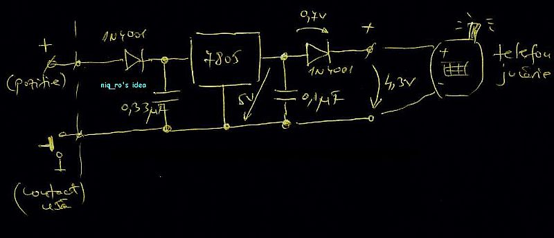 alimentatorul de 4,3V (5V din LM7805 minus 0,7V pe dioda):
