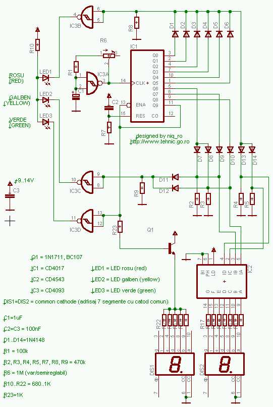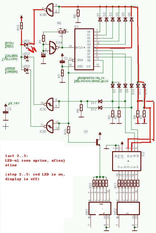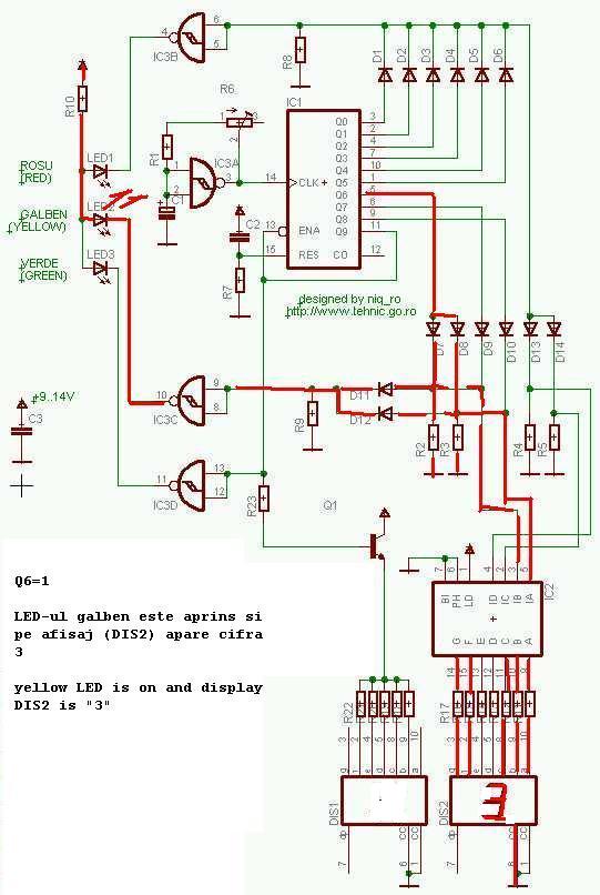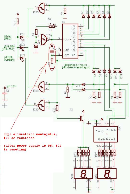 Pornind de la o solicitare de pe http://forum.poweraudio.ro si tinand cont de ce prezentasem la http://www.niqro.3x.ro/4017/4017.htm am dezvoltat o schema de semafor cu indicatie a timpului ramas pana la START...