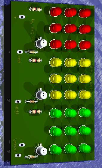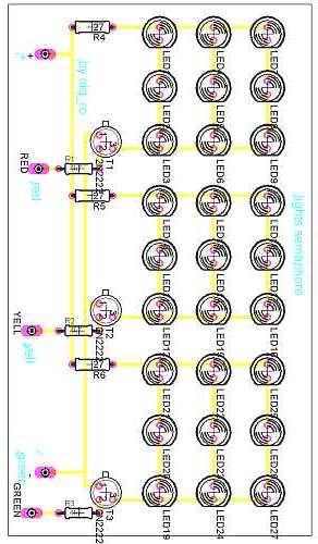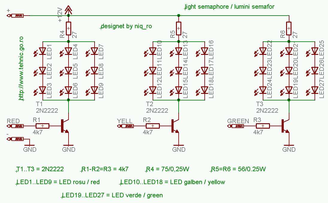 Semaforul cu cele 3 culori, va avea cate 9 LED-uri pentru fiecare culoare (bineinteles numarul poate fi marit la 16 de exemplu,
