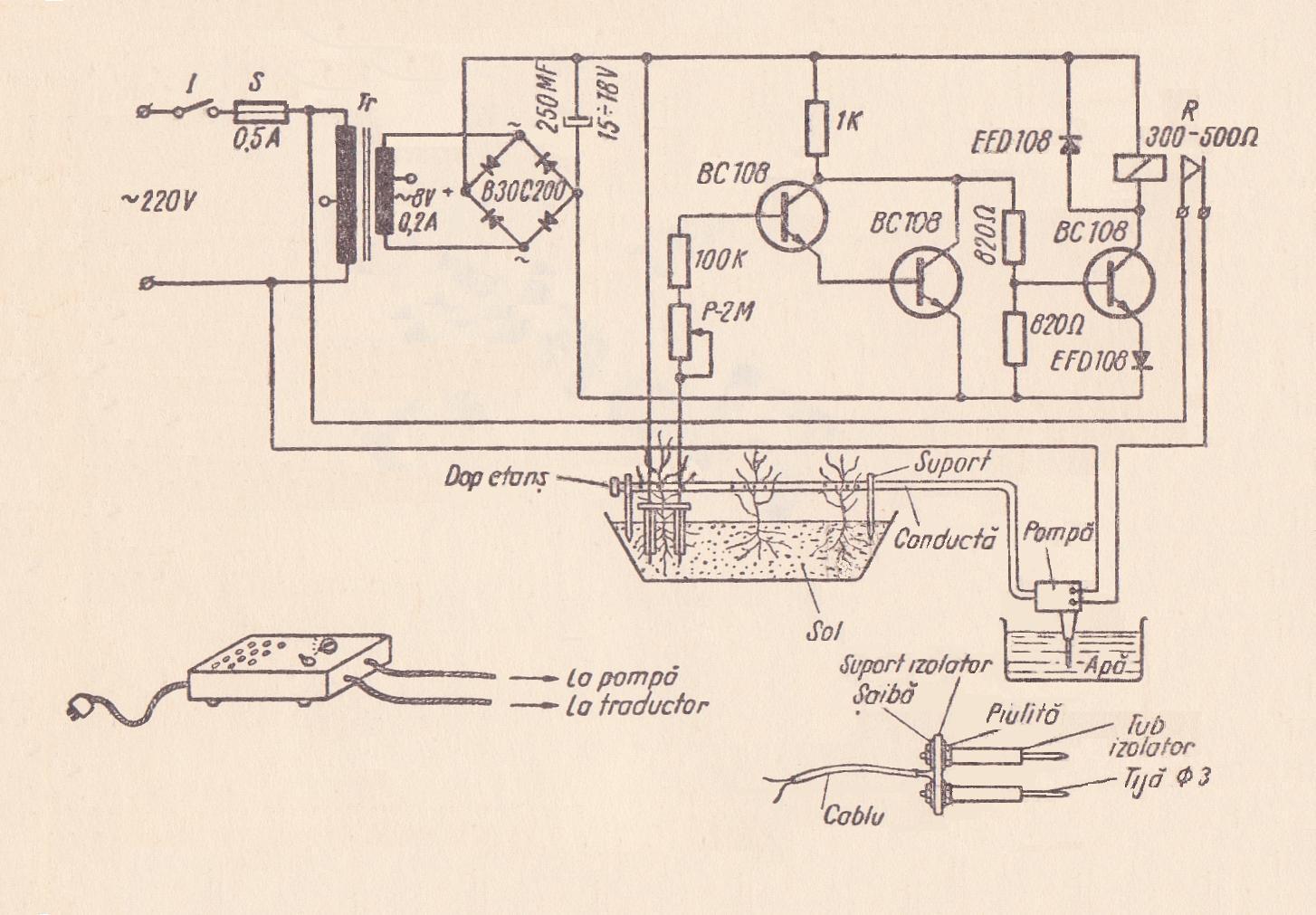 amplificator si intre contactele releului si pompa de apa se vor executa cu